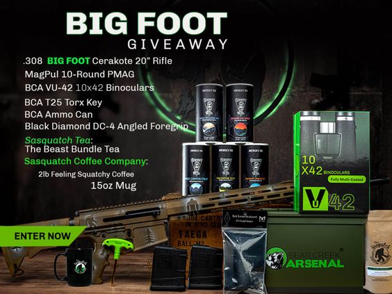 Sasquatch Coffee has teamed up with Bear Creek Arsenal and Sasquatch Tea for the April Bigfoot Bonanza Drawing.