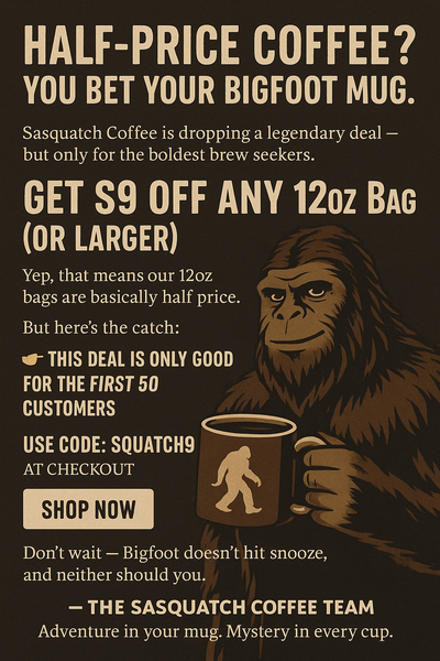 🚨 $9 Off Sasquatch Coffee – Only for the First 50!